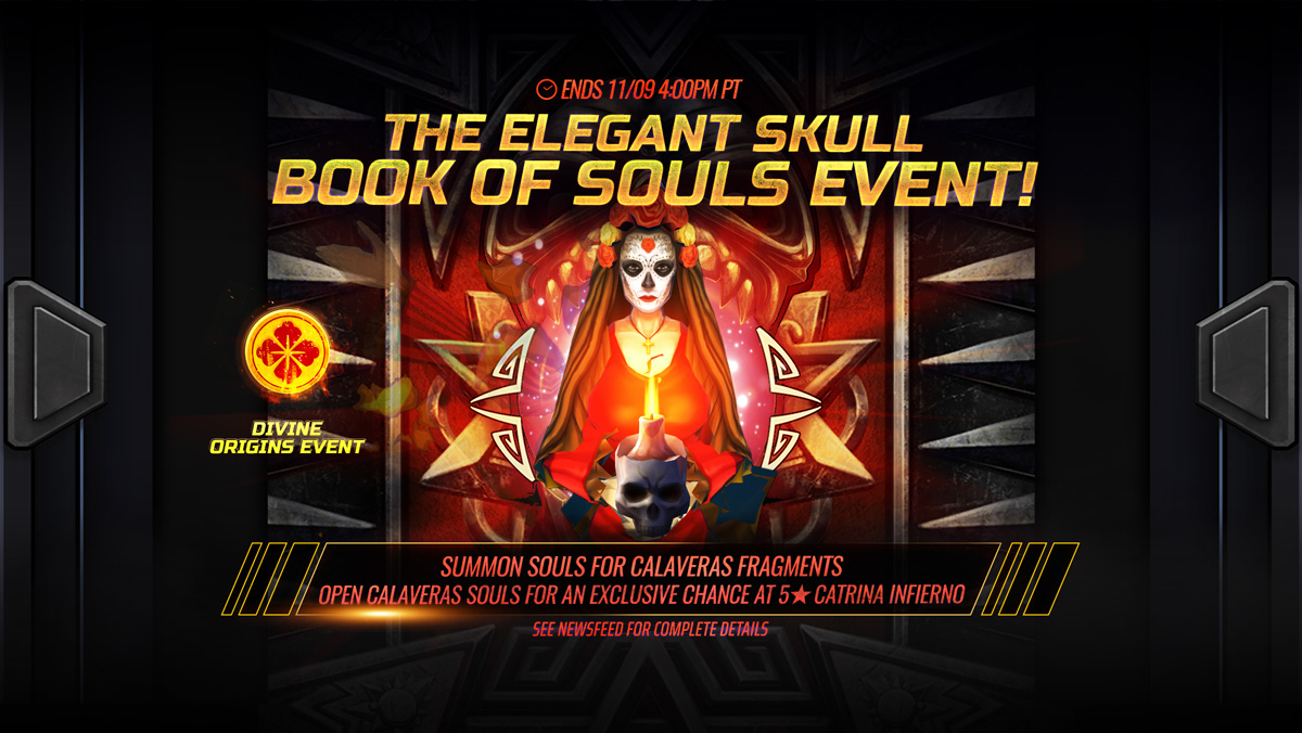 From now until November 9th at 4PM PDT, every non-Heroic Rare, Epic, Legendary and Mythic Soul (not including Talisman Souls) you open in the Book of Souls, regardless of where you earned it (Skull Quests, bought from Store, earned from Sacrifice, etc) will give you a guaranteed bonus of Calaveras Soul Fragments.
