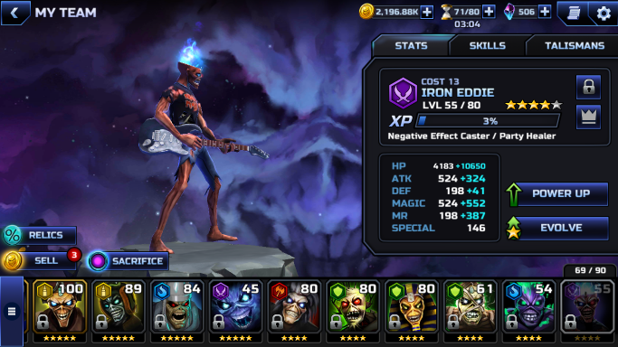 Grim Reaper: I think this one really needs to be maxed before he lives up to his potential. Otherwise, he tends to disappoint. His healing move is kind of crap and being able to resurrect everyone with a Fury is hardly exclusive at this point.