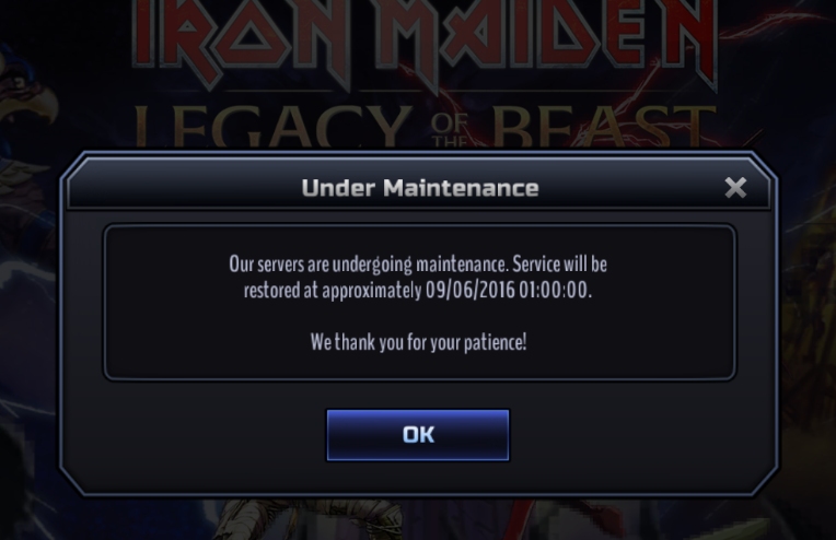 PLEASE NOTE: The game will be unavailable during this period.
