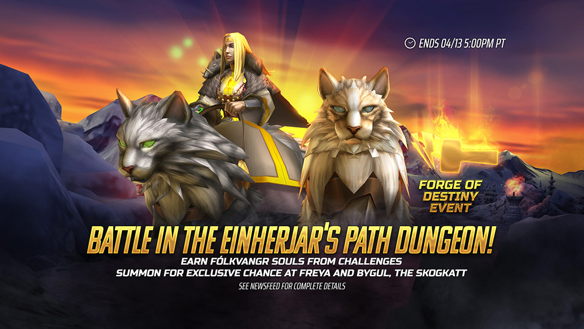 From now until April 13, 5 PM PT, battle your way through the snow and wind of Einherjar’s Path. This Dungeon comes with 4 difficulty settings and is packed with awesome rewards!