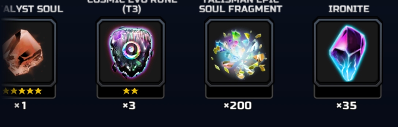 400 Talisman Gold Red Soul Fragments guarantees a Tier 1 to Tier 3 Gold or Red Cosmic Talisman and 5★ Gold Idol.