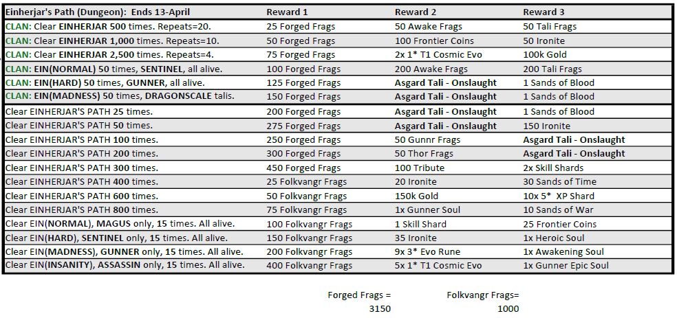 In addition to Fólkvangr Soul Fragments, completing event challenges will grant various other rewards, including Ironite, Frontier Coins, Asgard Talismans and Forged Soul Fragments!