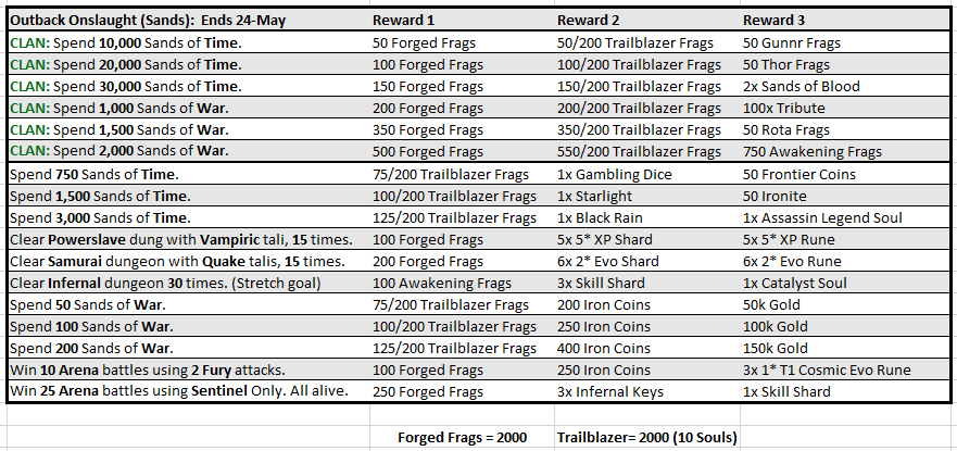 From now until May 24th at 5PM PDT, complete both regular and Clan event challenges to earn rewards such as Forged Fragments, Iron Coins, Gold, Trailblazer Soul Fragments and more!